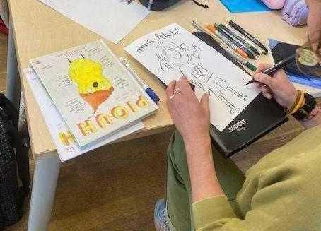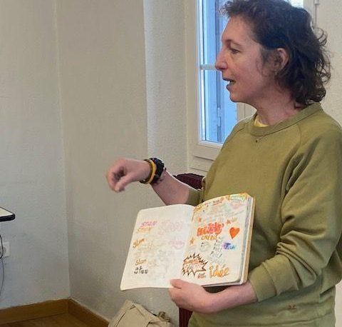 Cette rencontre nous a marqués, notamment par la beauté, la simplicité des dessins d’Estelle Billon-Spagnol, très présents dans son travail et dans son journal intime. Nous avons compris l’utilité de ses dessins, qui lui permettent d’exprimer ses émotions du jour, voire de se venger…